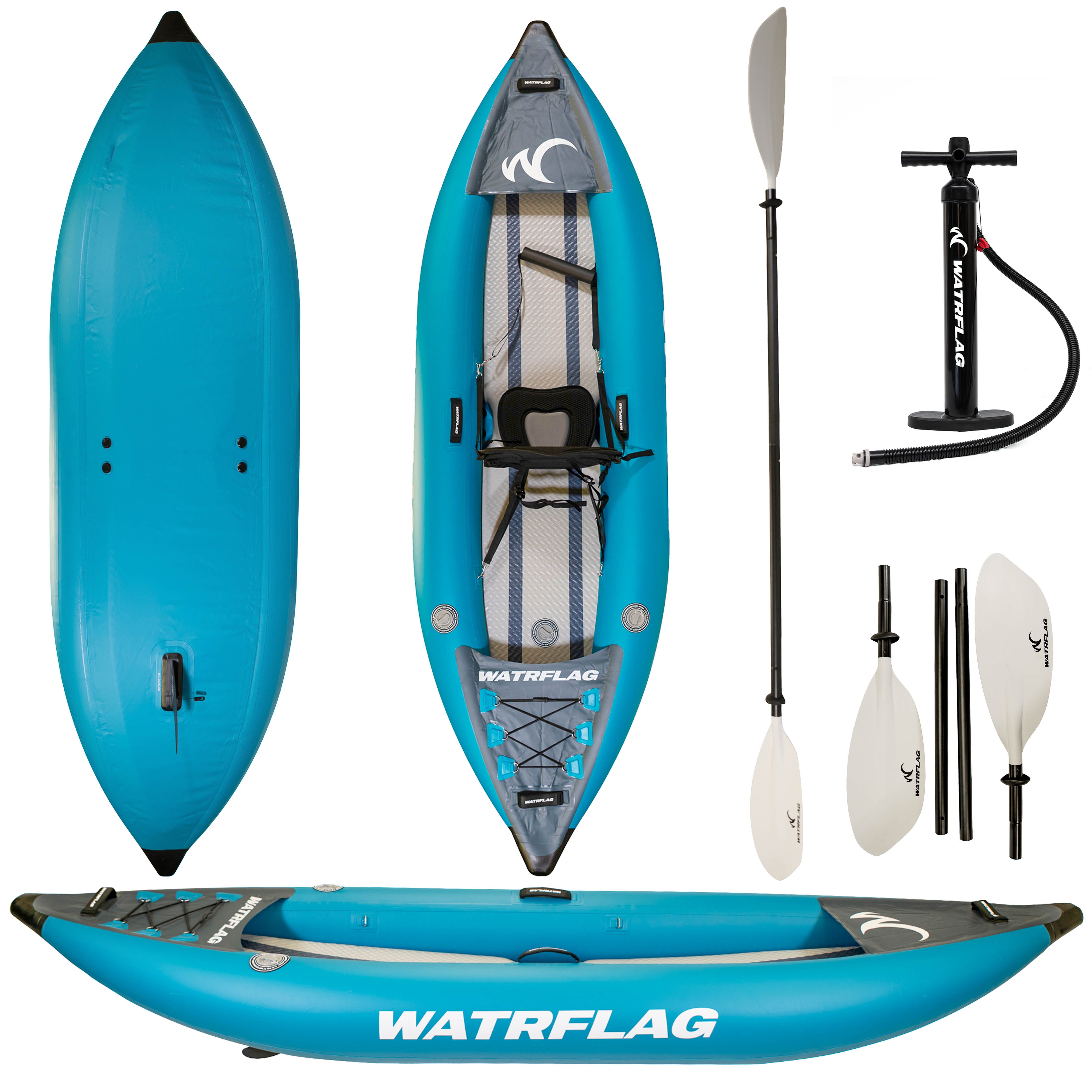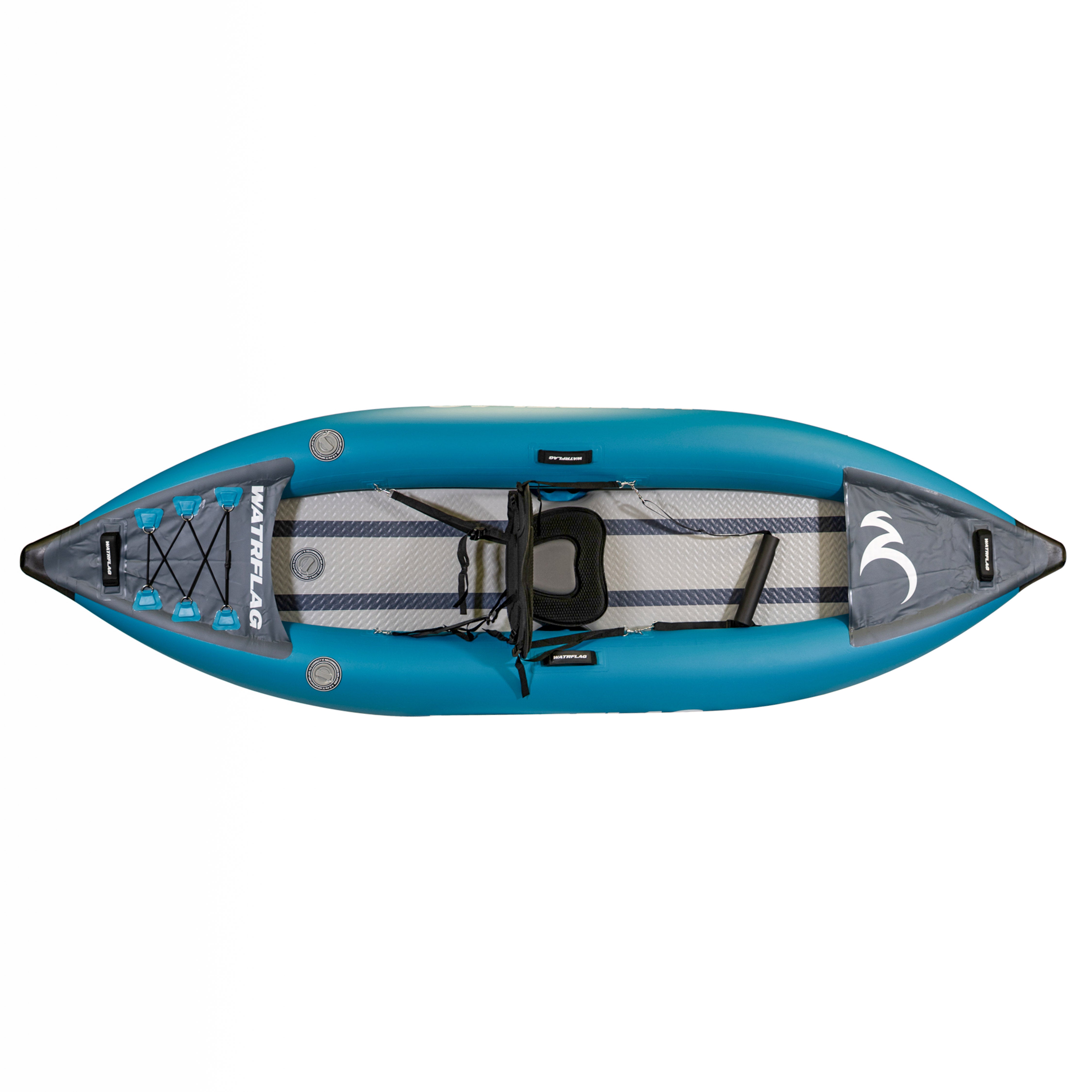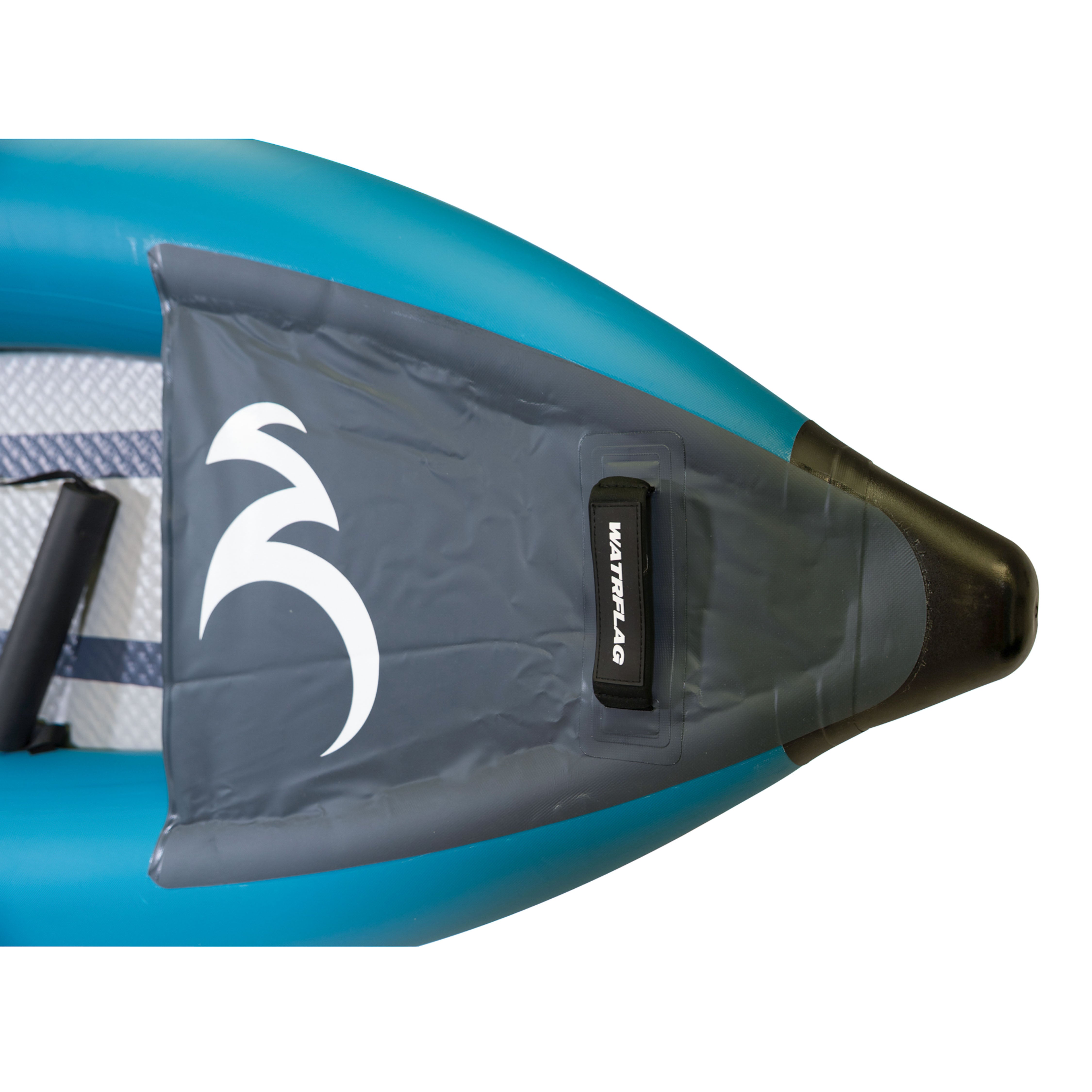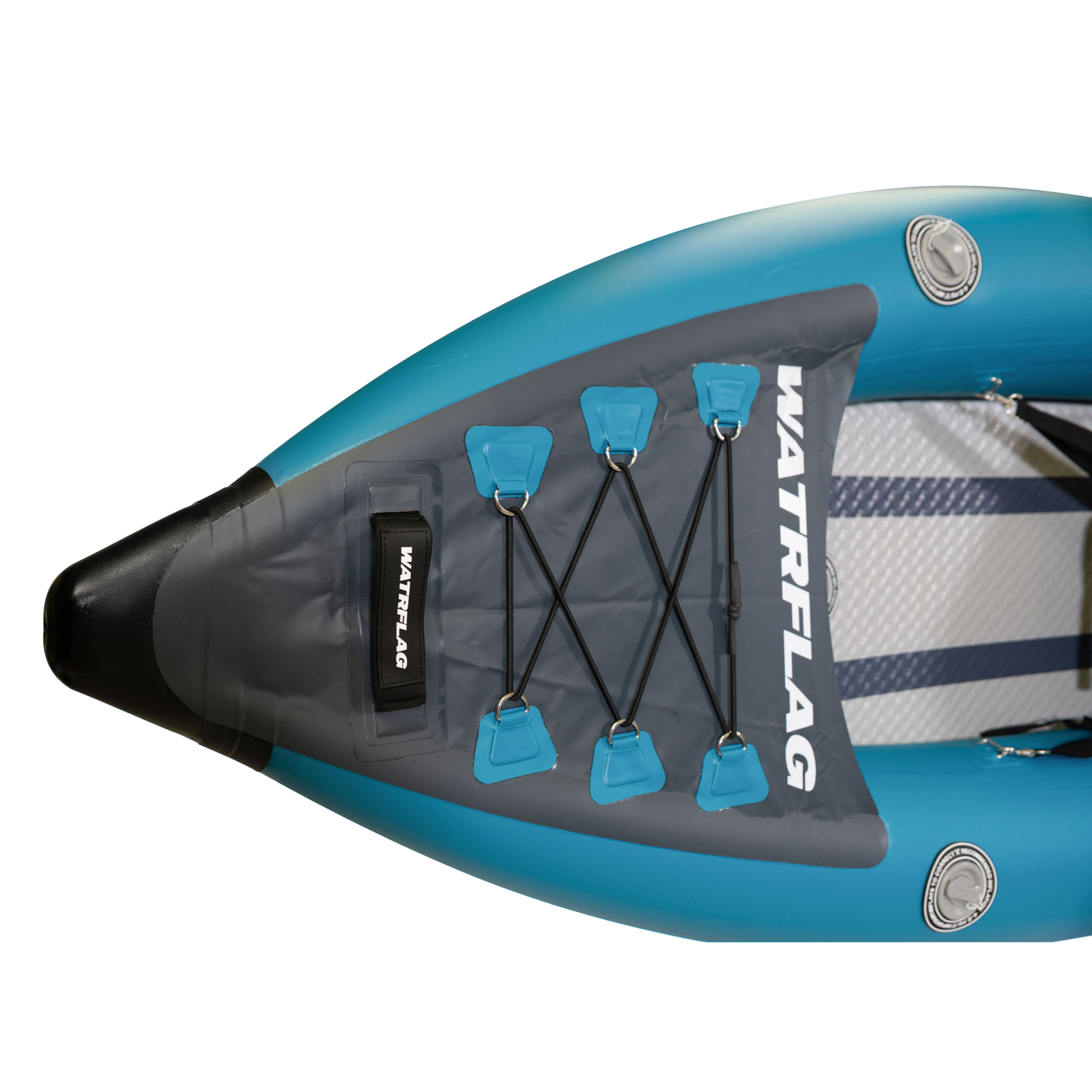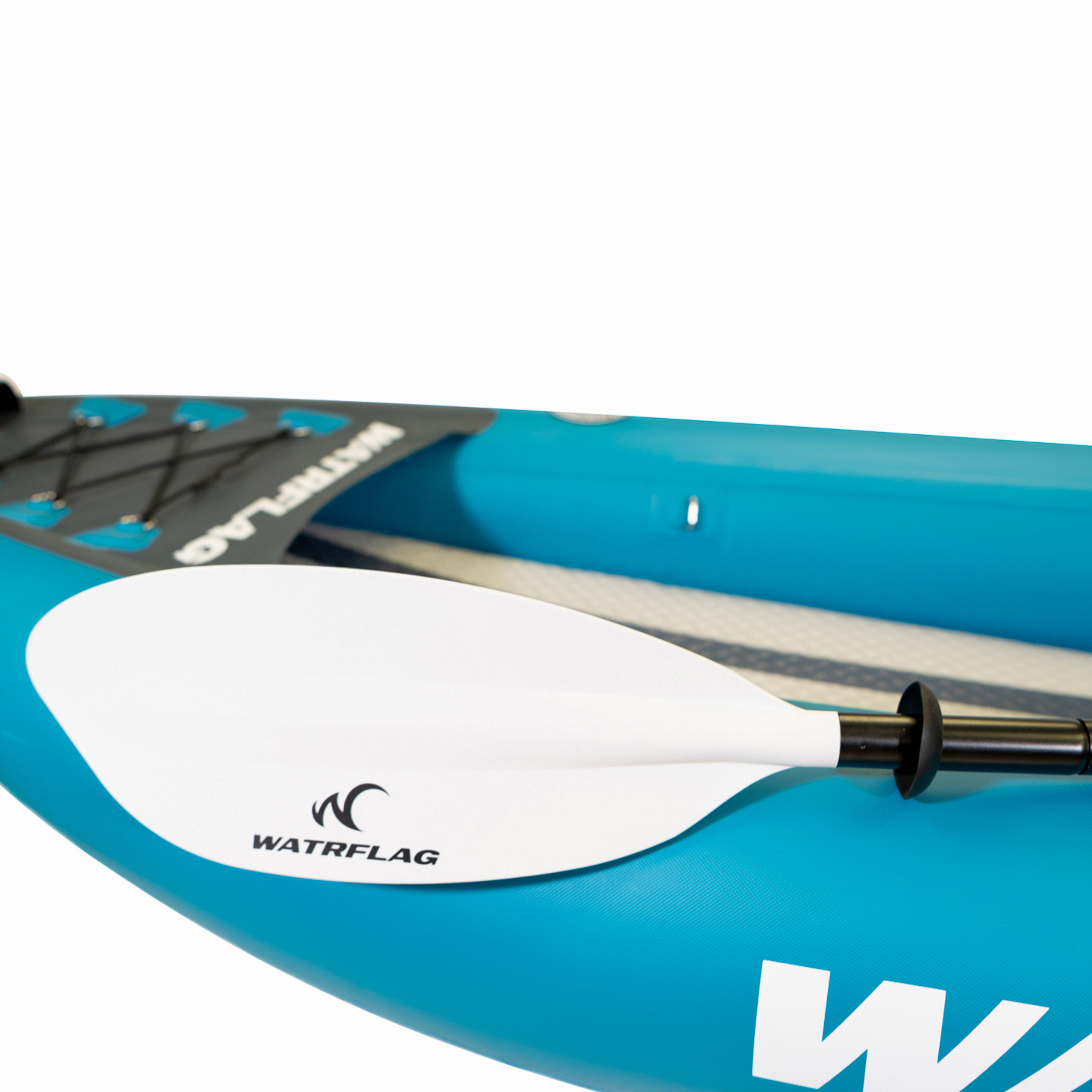 Deze opblaasbare solo kajak van Watrflag is gemaakt van duurzaam PVC en voorzien van Dropstitch technologie. Dat maakt dat de kajak hard en stijf is, waardoor je razendsnel door het water glijdt. Doordat de kajak een lengte heeft van maar liefst 320 cm, is een hoge snelheid gegarandeerd. De Kajak is zo ontworpen dat de peddelaar dicht op het water zit met een breed zitgedeelte (90 cm), dat zorgt voor veel stabiliteit van deze één- persoons kajak. Met de bijgeleverde inschuifbare vinnen kun je uitstekend koers houden met de kajak, ondanks dat je alleen peddelt.